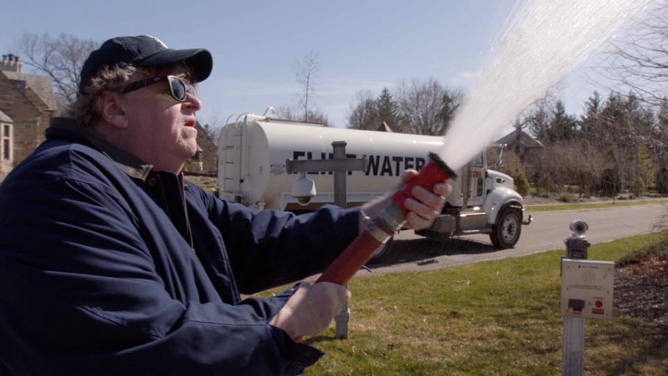 この汚染の直接の要因は、フリントの財政破綻により五大湖の1つ、ヒューロン湖から水を調達することが不可能になったため、代わりにフリント川を水源にしたことにある。この川の水質が非常に悪いため、老朽化していた水道パイプの鉛が溶け出すという事態になった。(参照)映画の中で、ムーア自身もこの問題に対するデモに参加し、共和党のリック・スナイダー州知事を逮捕せよと叫んでいる。