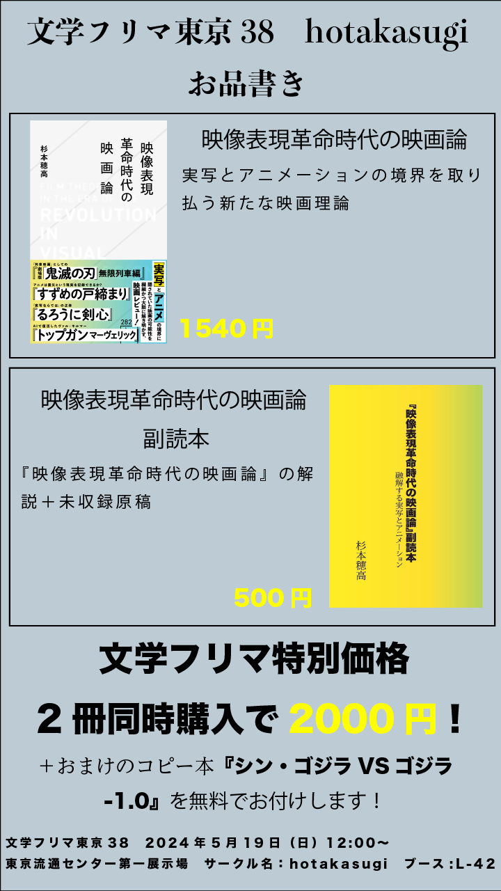 昨年末に出版した『映像表現革命時代の映画論』と、コミケでも頒布したその副読本をセットで提供します。