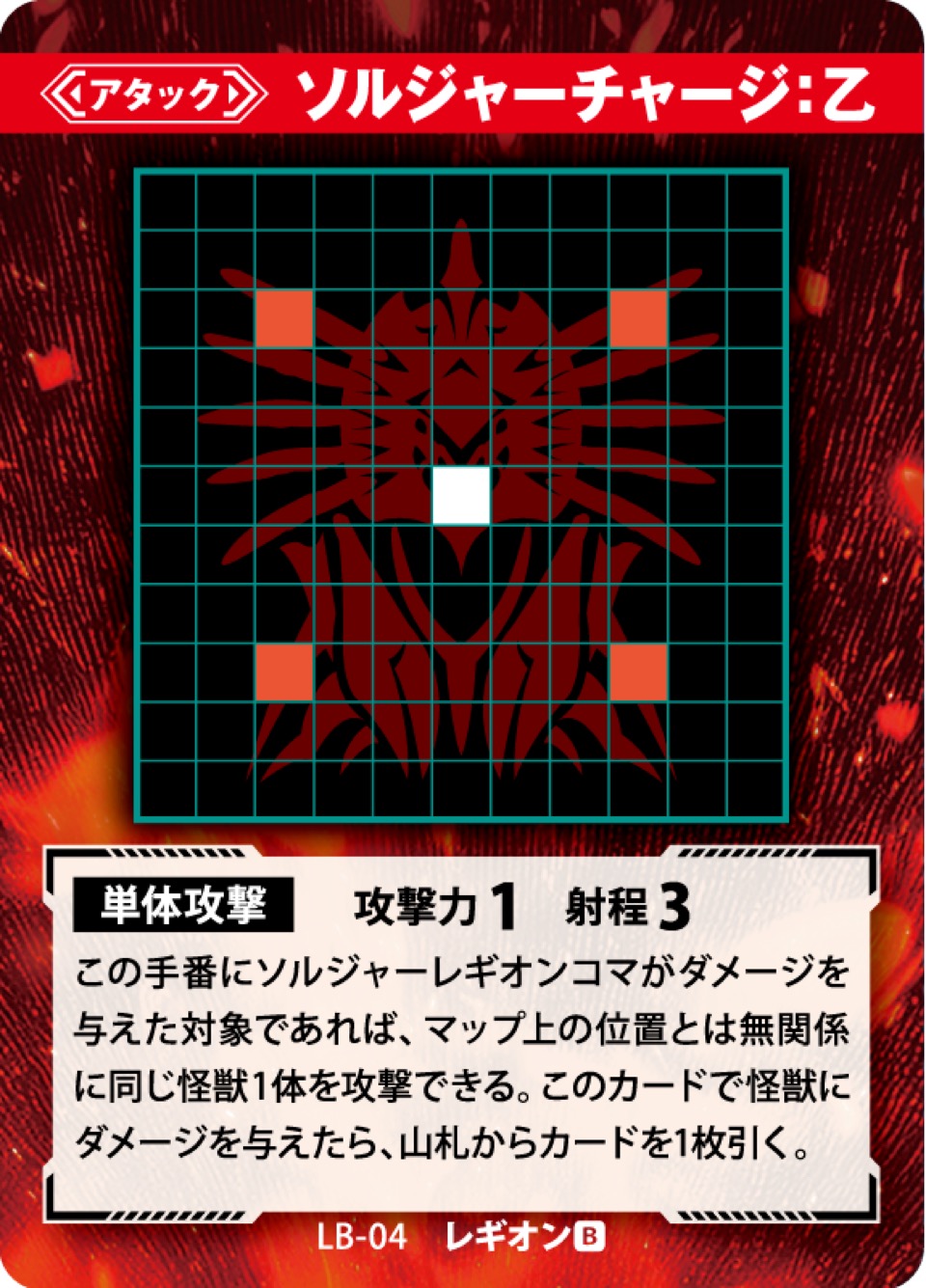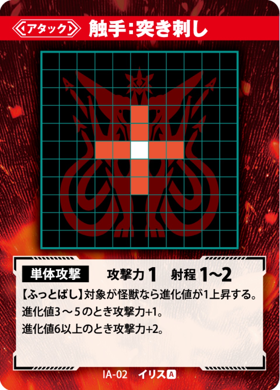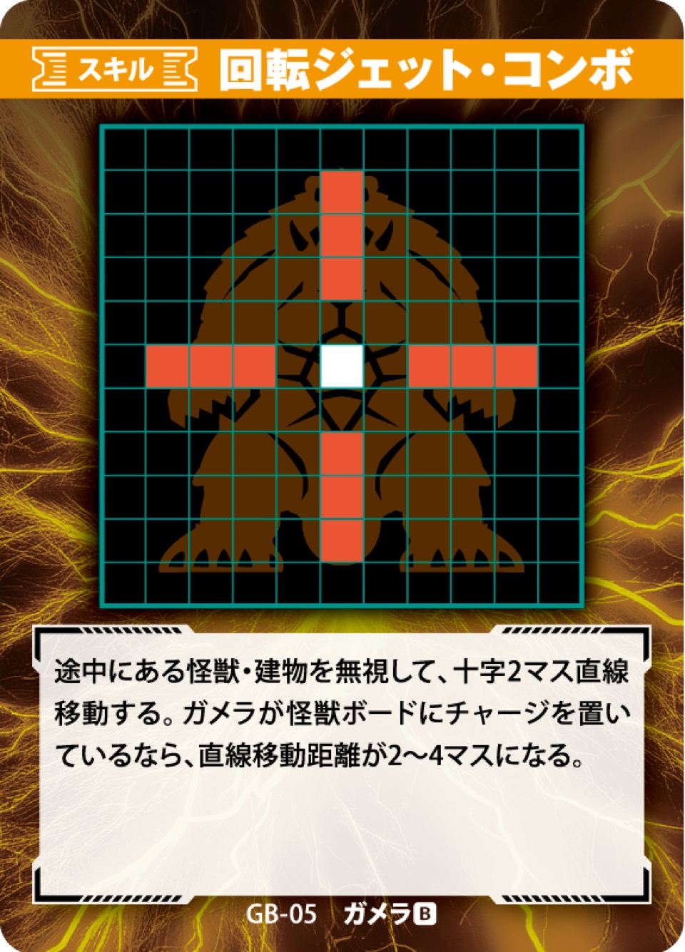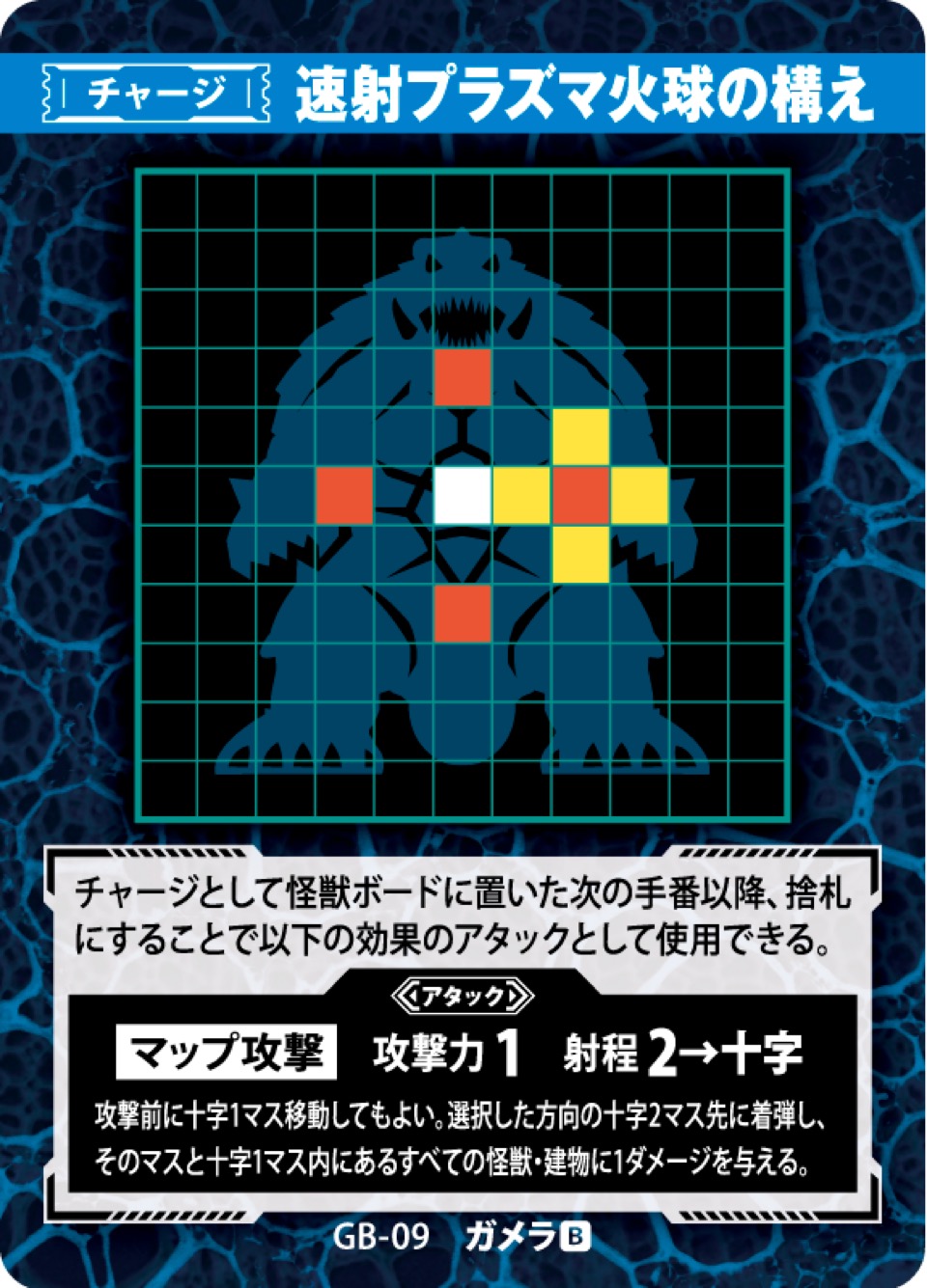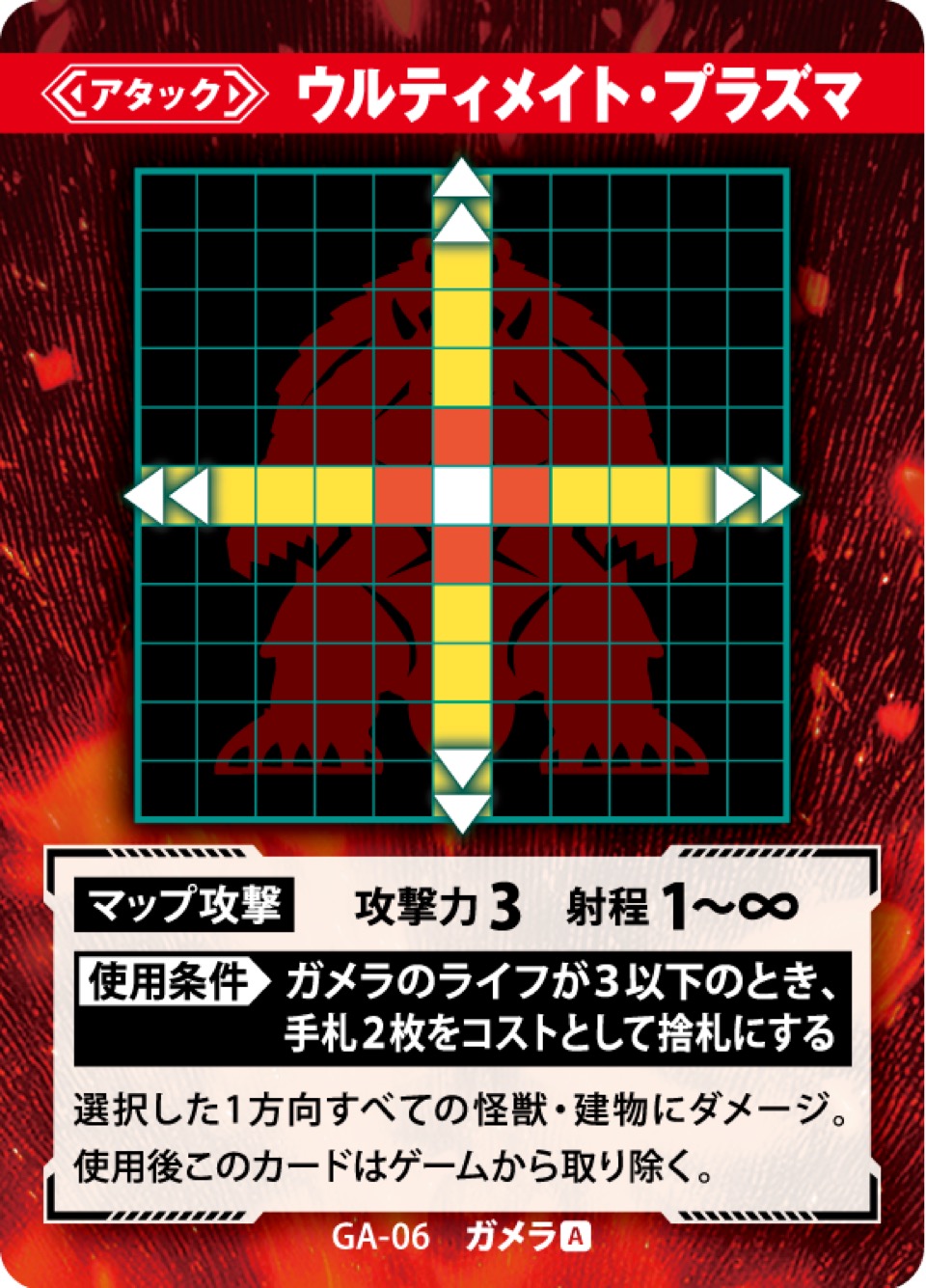 • 【アタック】カード(赤): 他の怪獣や建物を攻撃する。