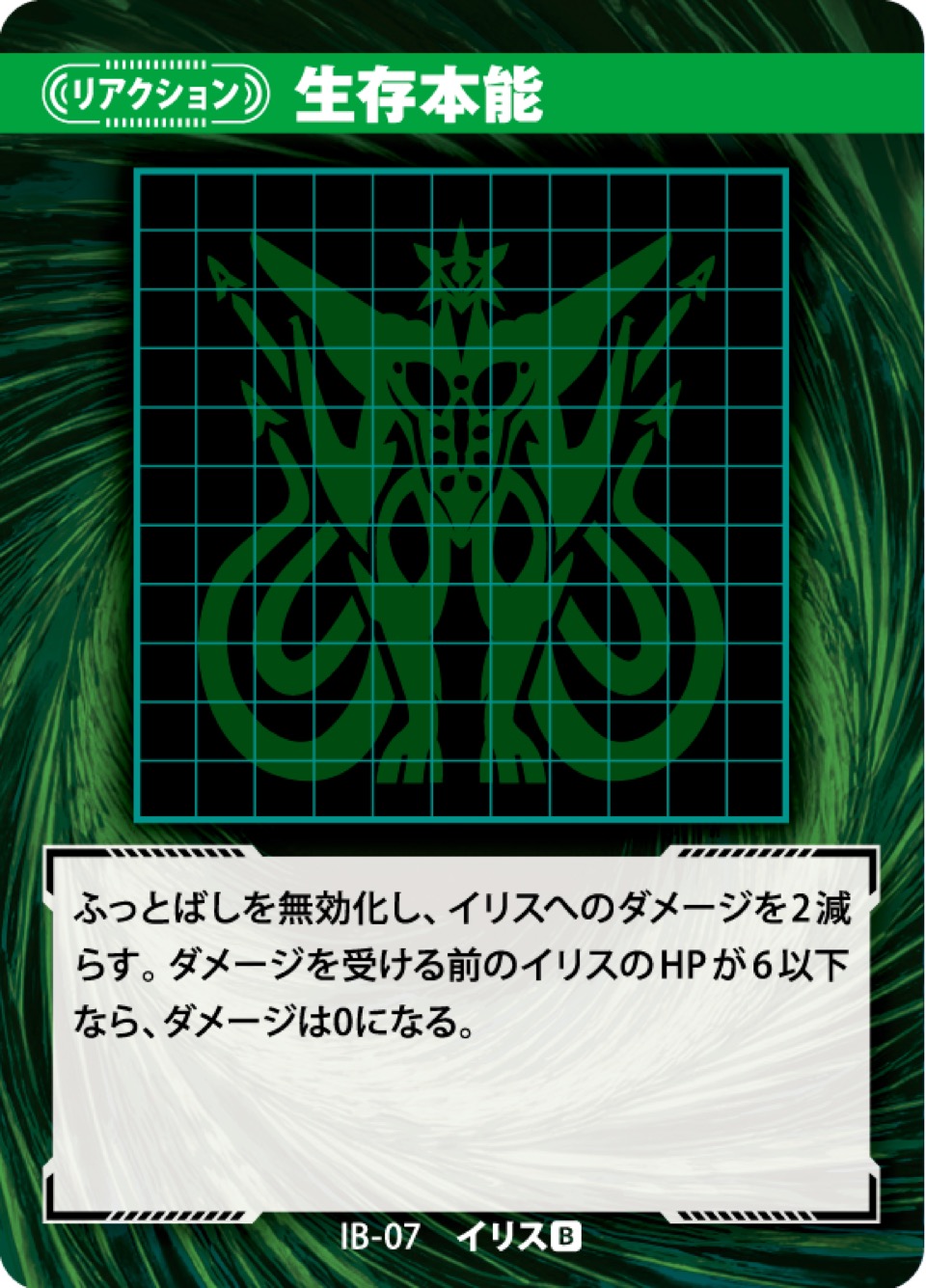 • 【リアクション】カード(緑): 敵の攻撃に対して使用する防御や反撃のカード。