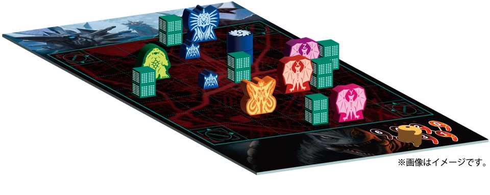 各怪獣の特徴を再現した専用のカードデッキを駆使し、マップ上の建物や他の怪獣との位置関係を測りながら戦う、戦略性の高いバトルロイヤルが楽しめる。