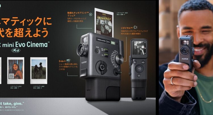 富士フイルム株式会社は2026年1月7日、instax™“チェキ”シリーズの最新モデルとして、ハイブリッドインスタントカメラ「instax mini Evo Cinema(インスタックス ミニ エヴォ シネマ)」(以下、mini Evo Cinema)を発表した。発売日は2026年1月30日。